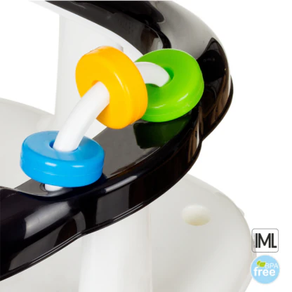 Krzesełko do Kąpieli Panda z Zabawką, Maltex to wyjątkowy gadżet, który podnosi komfort podczas codziennych kąpieli Dziecka w wannie lub brodziku. Krzesełko uwzględnia anatomię Dziecka, co zapewnia prawidłową pozycję siedzącą, a jednocześnie pozwala na swobodne ruchy rączkami i nóżkami. Posiada wysokie oparcie, które jest odpowiednio wyprofilowane pod plecki Dziecka, jest dzięki temu odciążeniem dla Jego wzmacniającego się kręgosłupa. Posiada również 4 praktyczne przyssawki, które zapewniają stabilne przytwierdzenie do podłoża, co sprawia, że produkt jest bezpieczny podczas użytkowania. Krzesełko posiada 3 kolorowe kółka i ciekawą grafikę pandy, co dodatkowo zachęca do kąpieli i ją uprzyjemnia. Dodatkowo wewnętrzne krawędzie oparcia zakończono elastomerem, który zabezpiecza skórę Dziecka przed otarciami. Jest to pomocny produkt dla Rodziców, którzy mogą swobodnie obmyć całe ciało Malucha bez większego wysiłku.