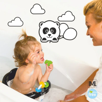 Ciekawa grafika ulubionego zwierzątka pandy i kolorowe kółeczka zachęcają do kąpieli;