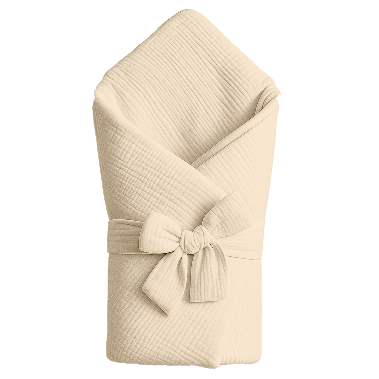 Rożek niemowlęcy z kokardą z muślinu kreszowanego, 75x75 cm Beżowy Polski Produkt, Cztery Słonie