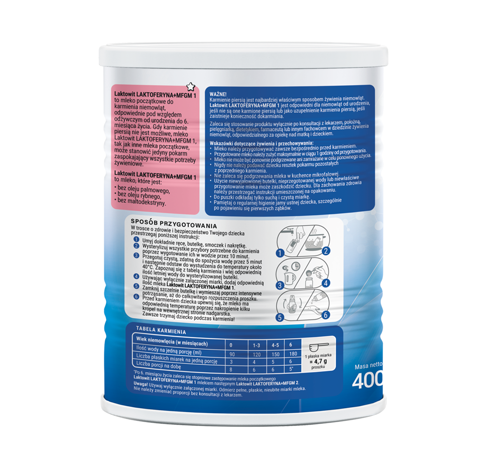 3x Mleko Laktowit 1 LAKTOFERYNA + MFGM Początkowe 0-6 m 400 g