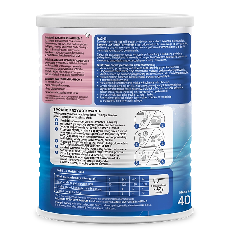 3x Mleko Laktowit 1 LAKTOFERYNA + MFGM Początkowe 0-6 m 400 g