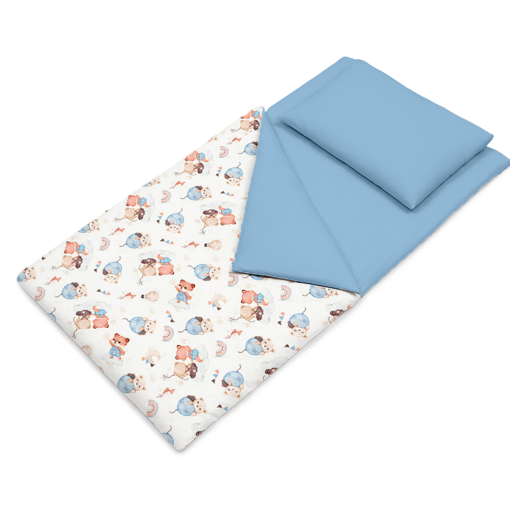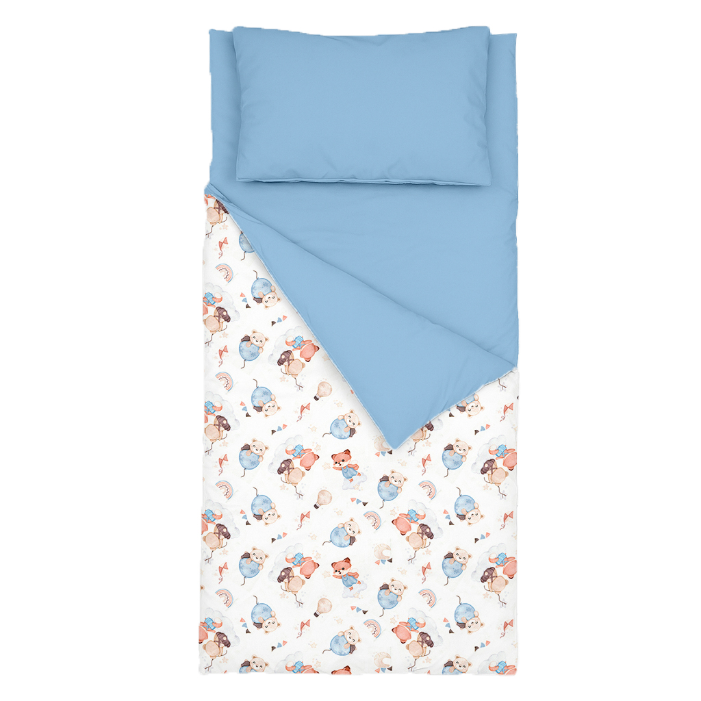 Komplet pościeli dla przedszkolaka do spania z poduszką i workiem – komplet 3w1, Zabawa z balonami, błękit