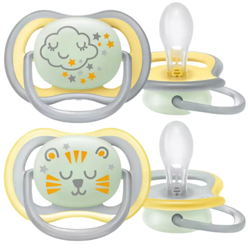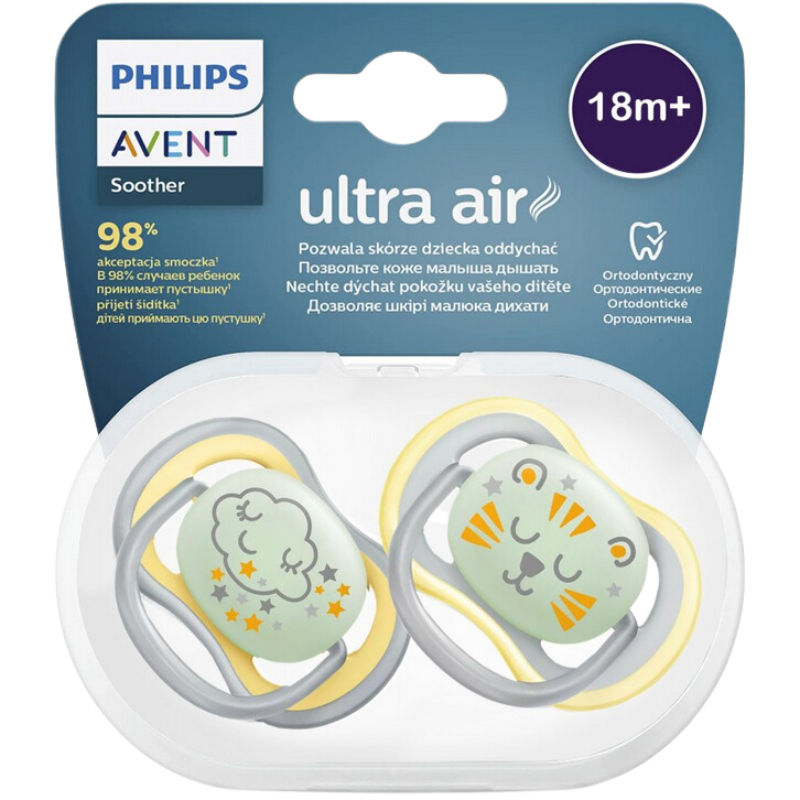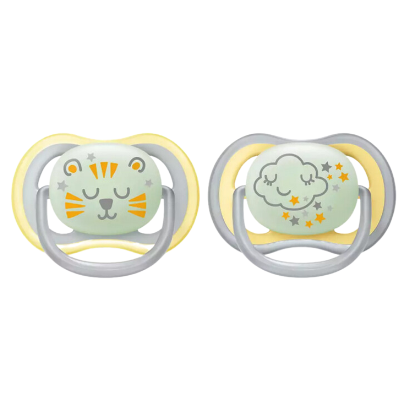 Smoczek Uspokajający Ultra Air Nighttime 2-pack SZARO-ŻÓŁTY 18m+, Philips Avent