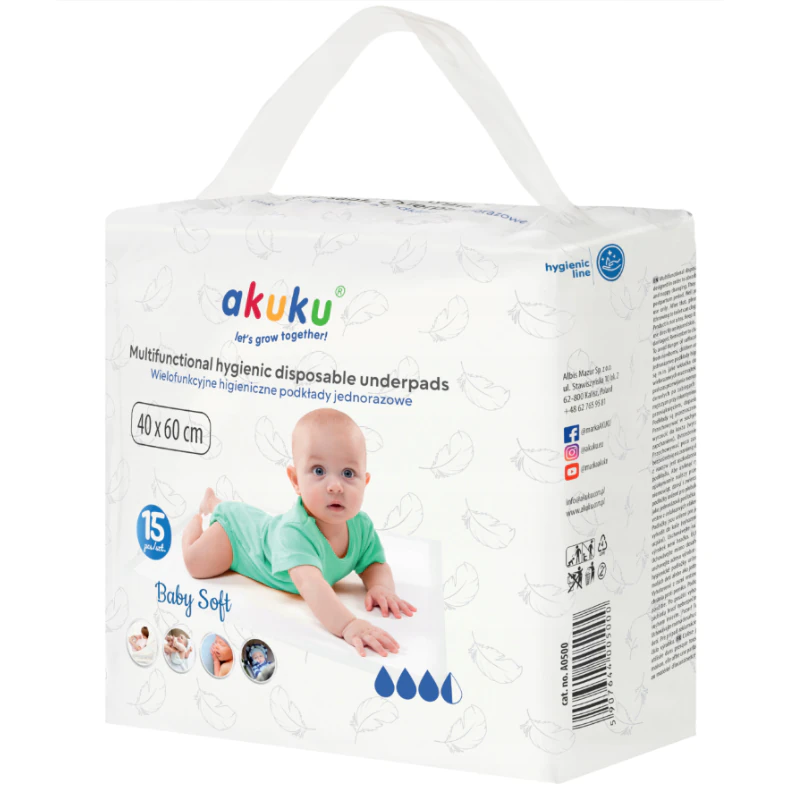 Wielofunkcyjne Higieniczne Podkłady Jednorazowe Baby Soft, 15szt., Akuku